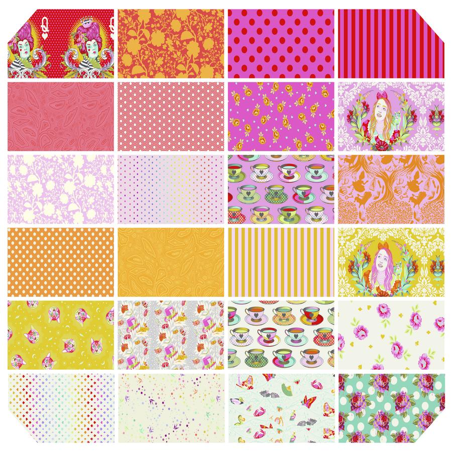 Tula Pink's spring 2021 collection. This collection is full of gorgeous, bright prints inspired by Lewis Carroll's beloved 1865 classic, Alice in Wonderland. Shipping is expected in May 2021.