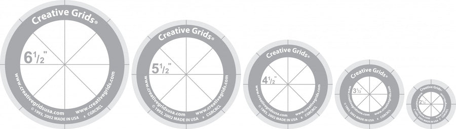 Make circle cutting quick and easy with these high quality non-slip rulers. This set of circle rulers allows you to use your rotary cutter to cut circles in sizes: 2 1/2", 3 1/2", 4 1/2", 5 1/2", and 6 1/2". These are also great for rounding corners on ByAnnie bags!
